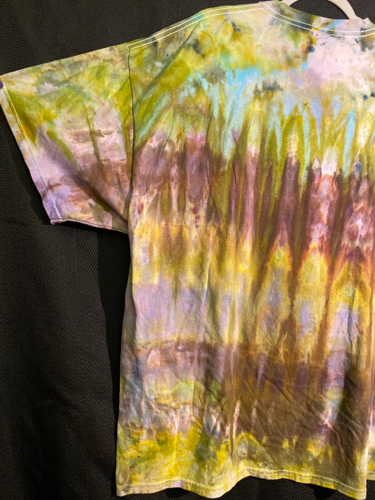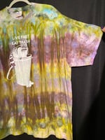 One of a kind, short sleeve tie dye, Live Fast Eat Trash Raccoon shirt.