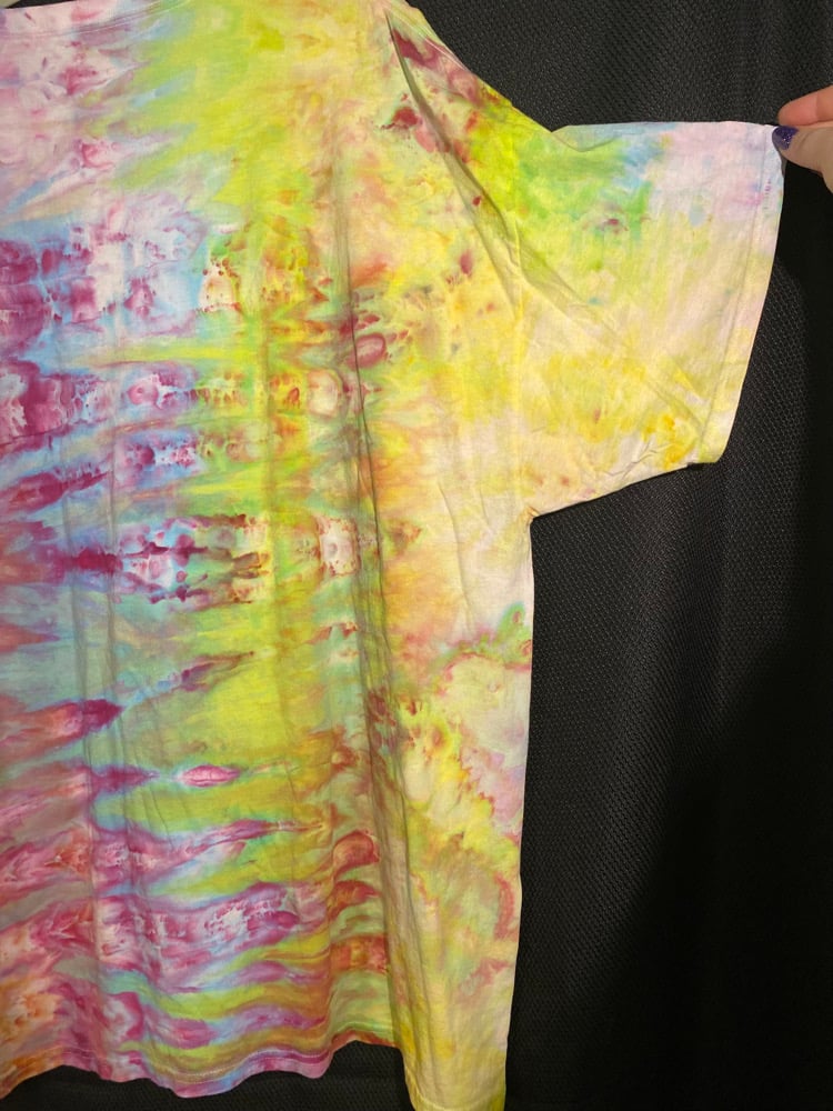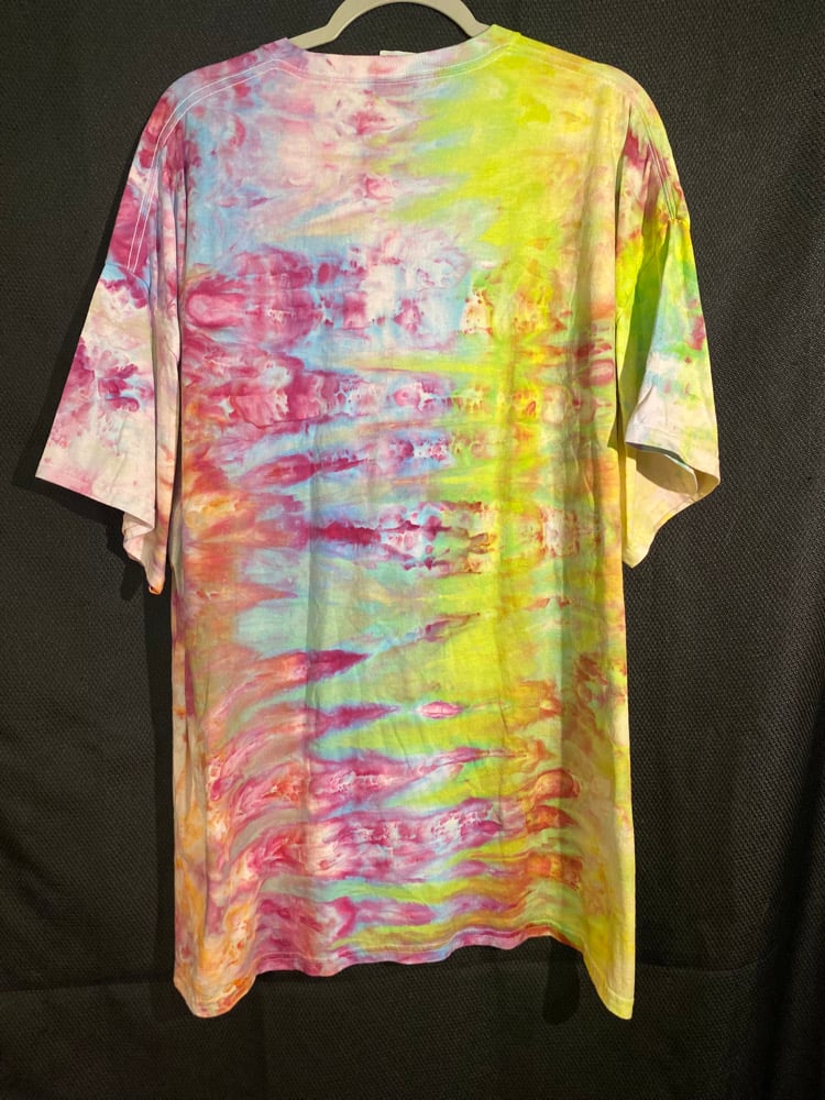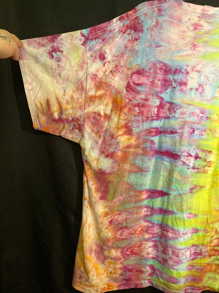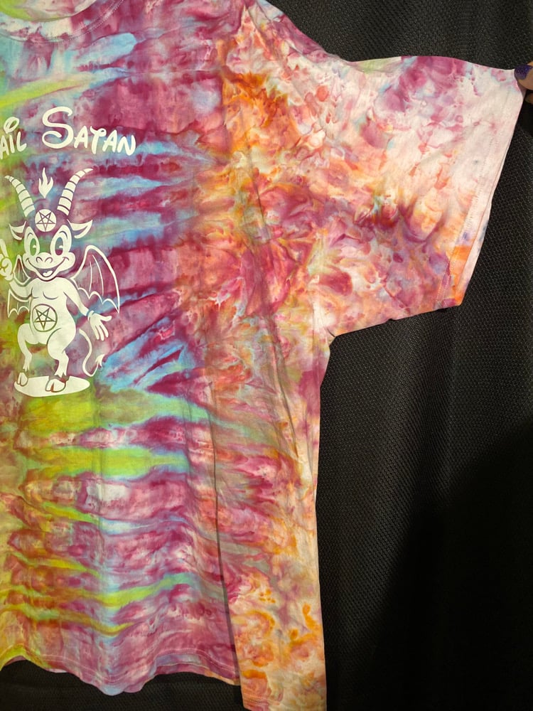 One of a kind, short sleeve tie dye Hail Satan shirt.
