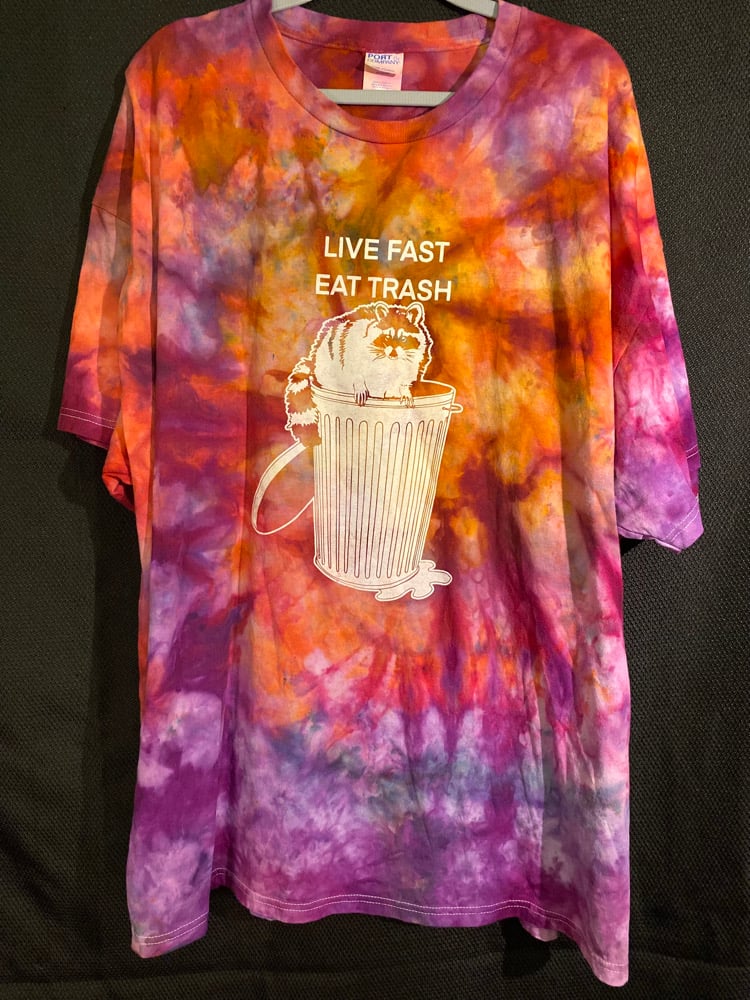 One of a kind, short sleeve tie dye, Live Fast Eat Trash Tie Dye Shirt