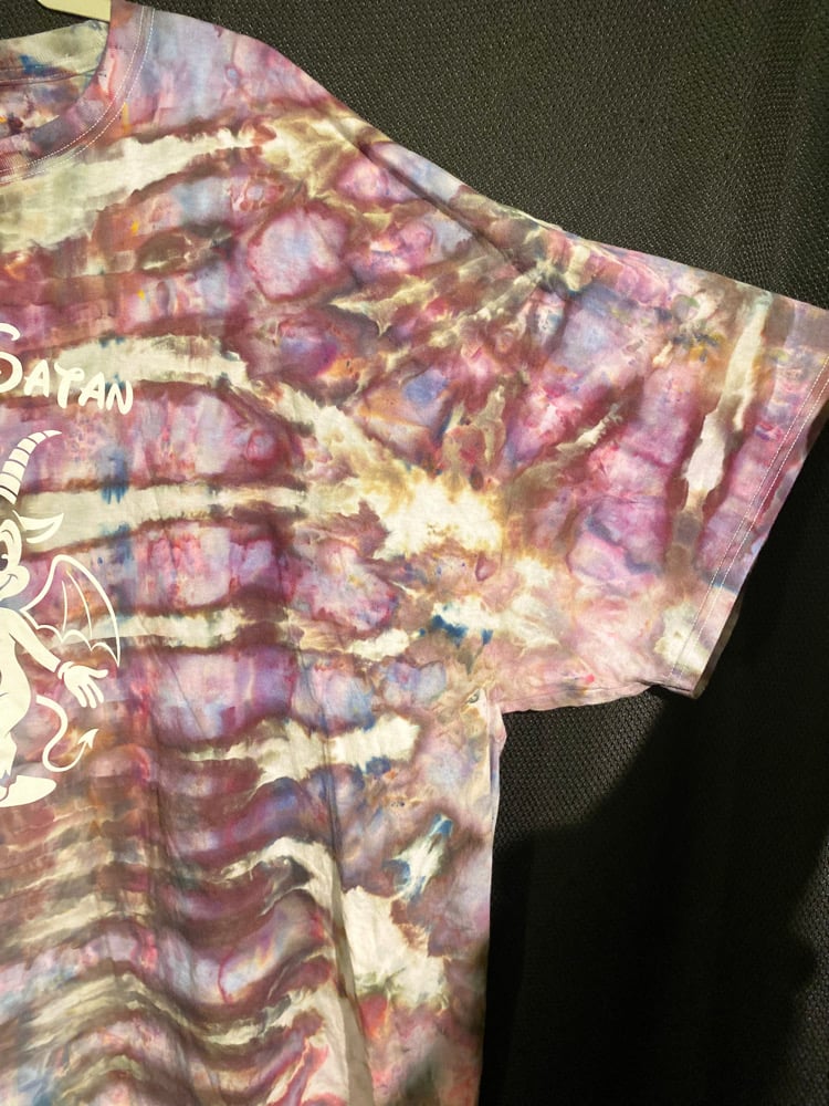 One of a kind, short sleeve tie dye Hail Satan shirt.