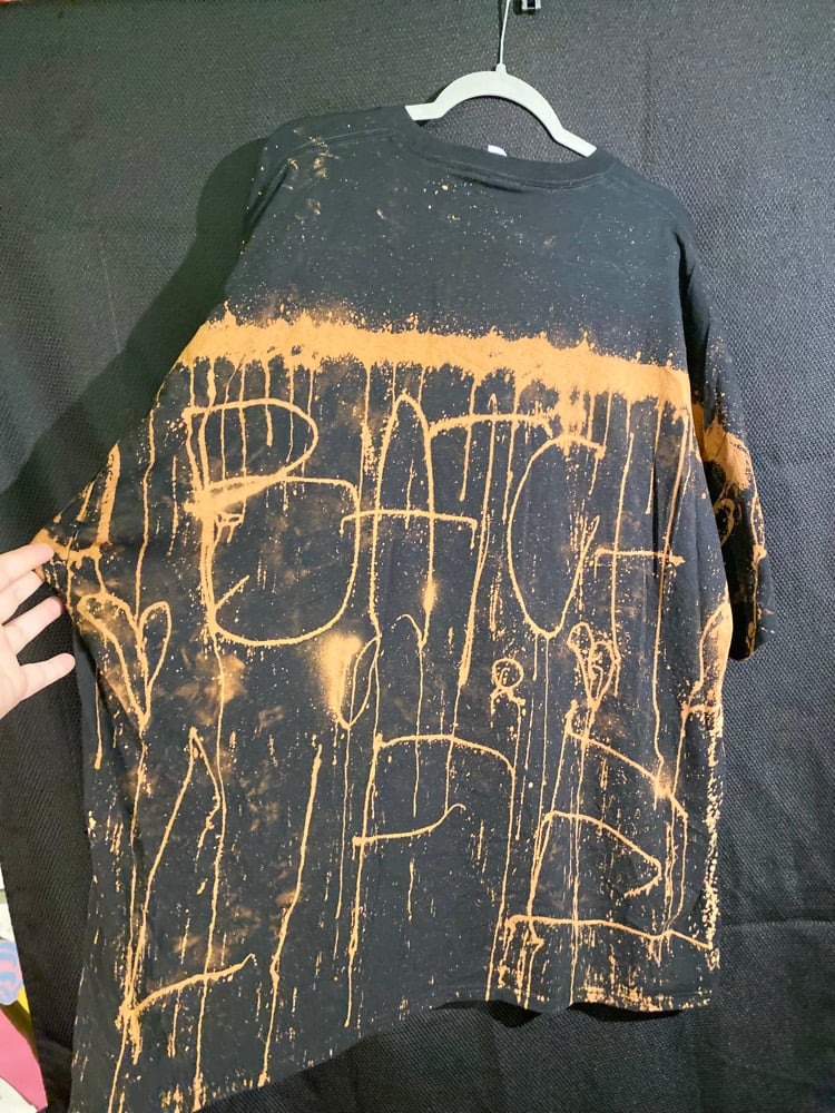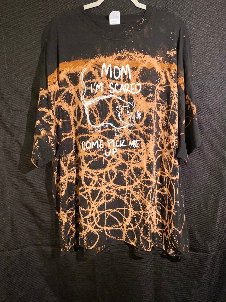One of a kind, short sleeve bleach dye, Mom I'm Scared Come Pick Me Up shirt.