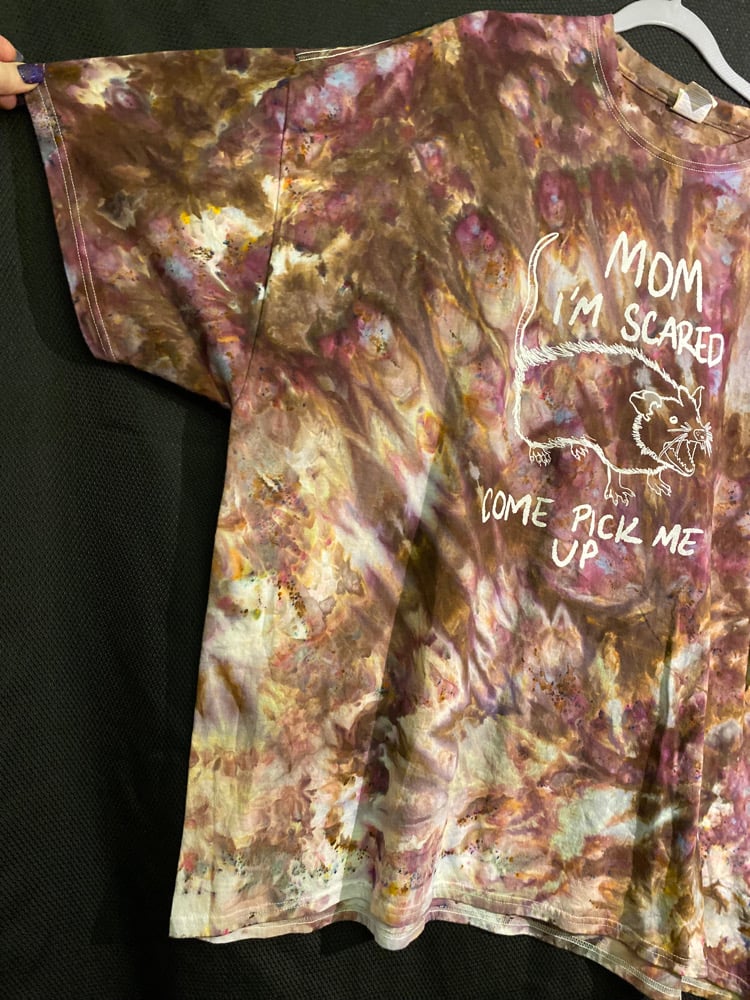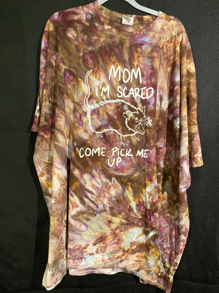 One of a kind, short sleeve tie dye, Mom I'm Scared Come Pick Me Up shirt.