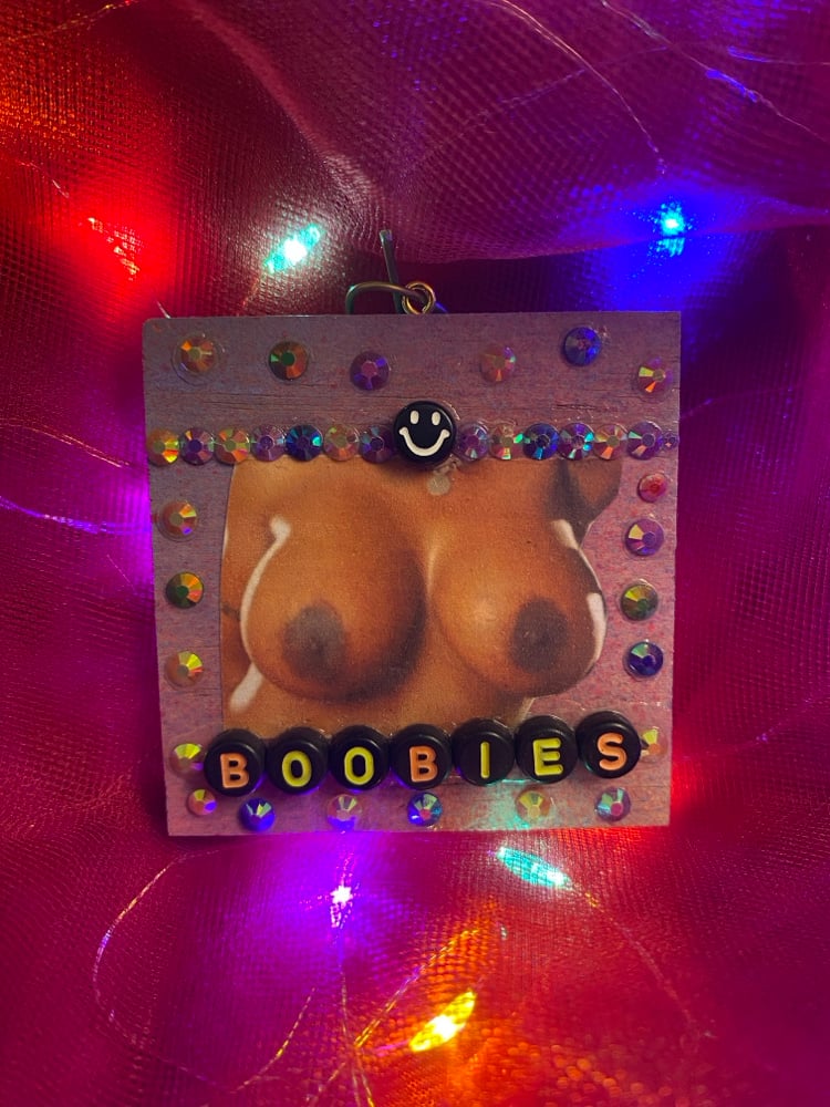-Each Pornament is made out of lightweight wood, then spray painted, collaged and bedazzled by our team of horny elves.