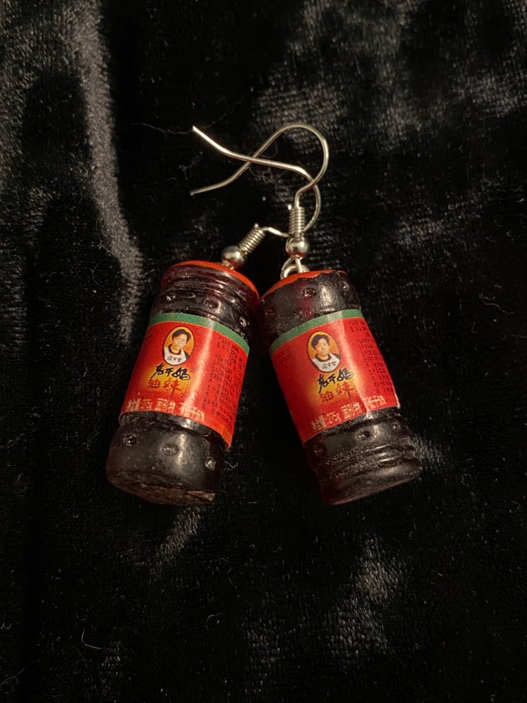 Resin charms with glossy paper labels Earrings are made with hypoallergenic, stainless steel hooks and findings