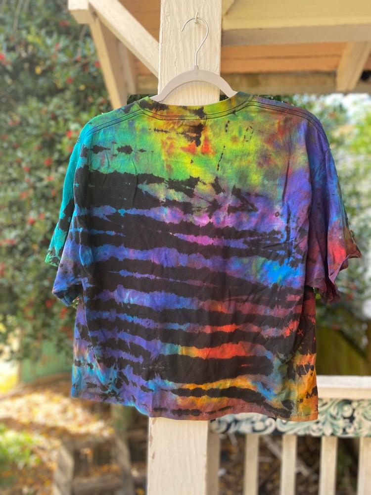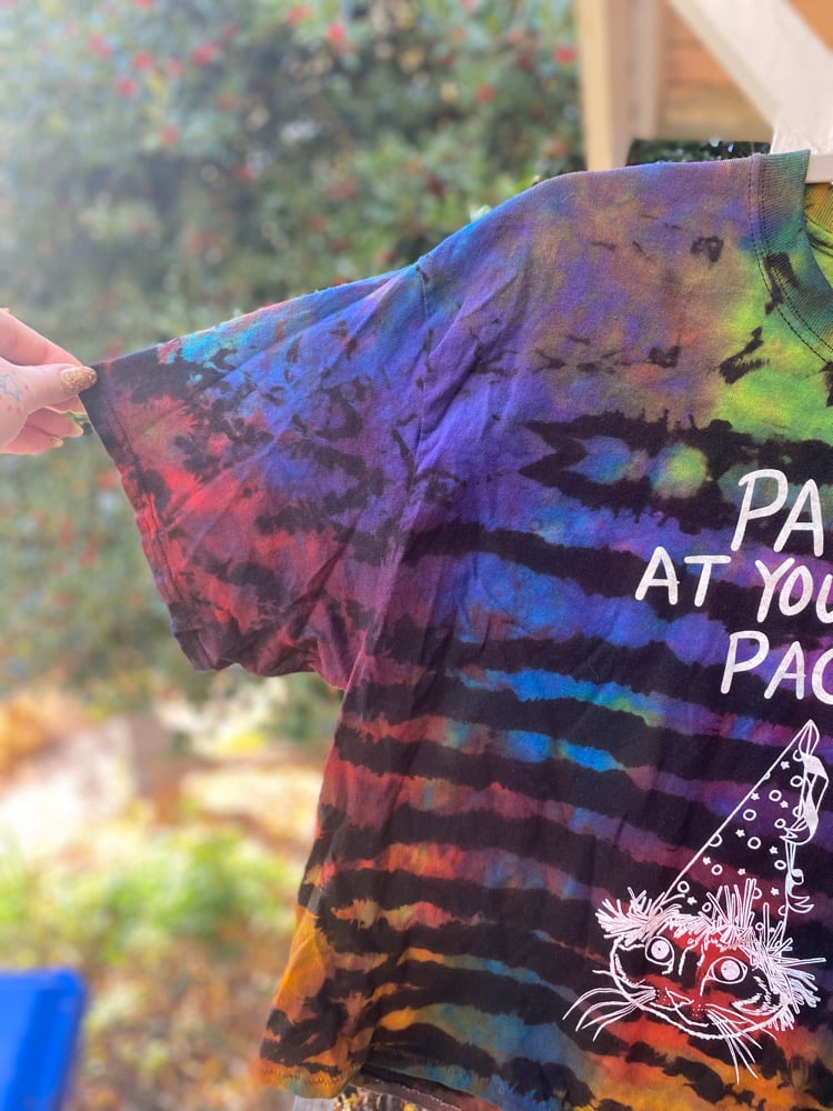 LARGE CROP TOP Party At Your Own Pace REVERSE Tie Dye Shirt C13