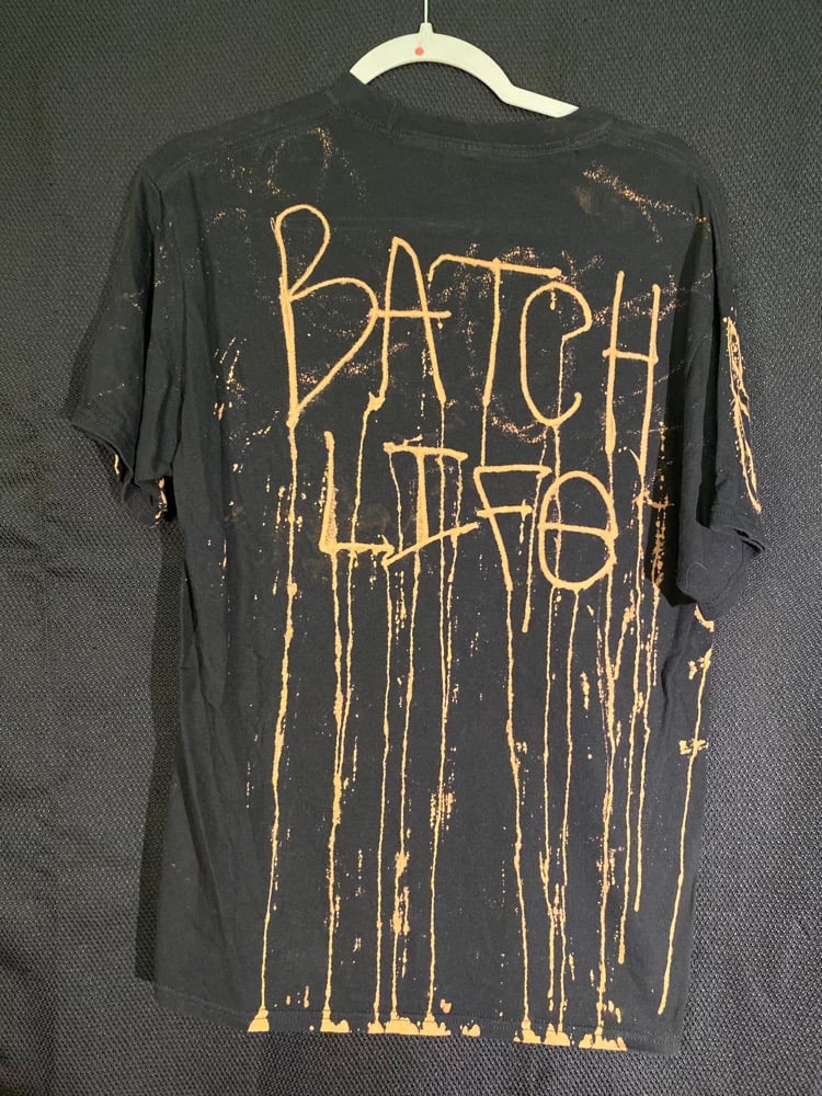 100% cotton shirt with screen printed image. Bleach shirts are chemically treated before washing to de-activate the bleach and make sure holes arenβt created on the shirt over time.
