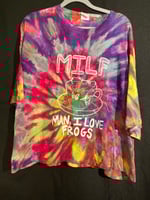 One of a kind, short sleeve tie dye, MILF Man I Love Frogs shirt.