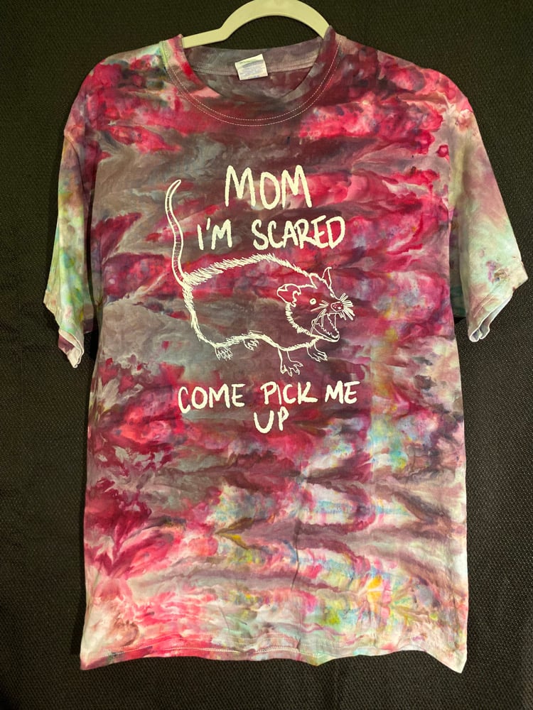 One of a kind, short sleeve tie dye, Mom I'm Scared Come Pick Me Up shirt.