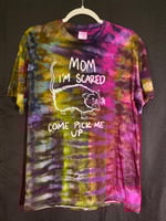 One of a kind, short sleeve tie dye, Mom I'm Scared Come Pick Me Up shirt.
