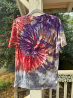 One of a kind, short sleeve tie dye, Godzilla Be Gay Do Crime shirt.
