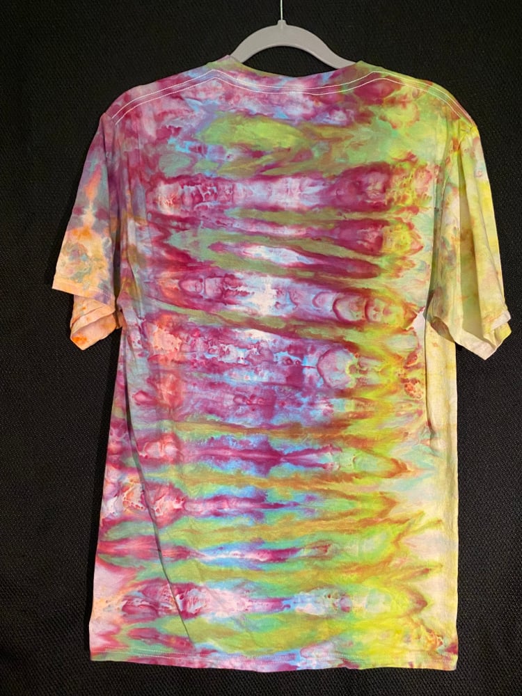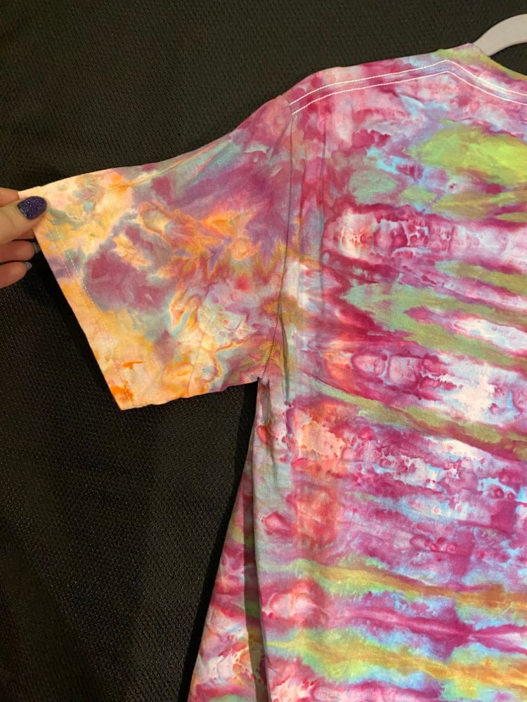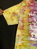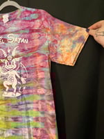 One of a kind, short sleeve tie dye Hail Satan shirt.