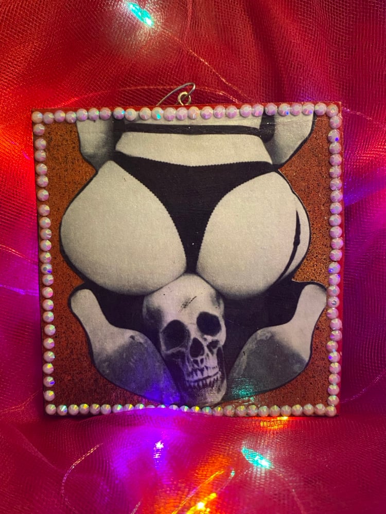 -Each Pornament is made out of lightweight wood, then spray painted, collaged and bedazzled by our team of horny elves.