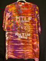 One of a kind, short sleeve tie dye, MILF Man I Love Frogs shirt.