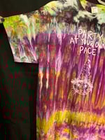One of a kind, short sleeve tie dye, Party At Your Own Pace shirt.